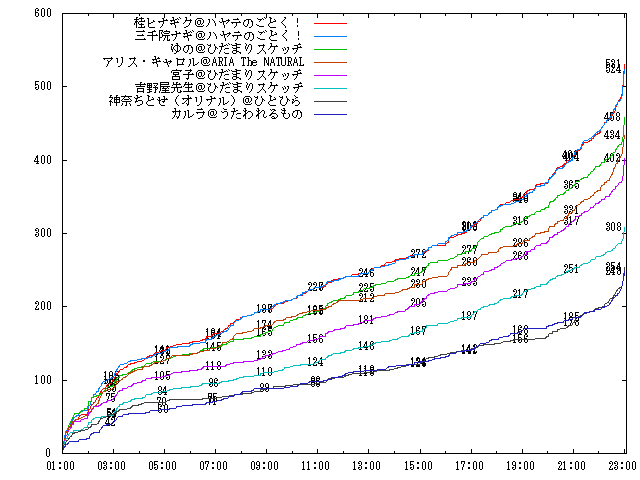 1位 531票 桂ヒナギク@ハヤテのごとく! 2位 524票 三千院ナギ@ハヤテのごとく! 3位 458票 ゆの@ひだまりスケッチ 4位 434票 アリス・キャロル@ARIA The NATURAL 5位 402票 宮子@ひだまりスケッチ 6位 308票 吉野屋先生@ひだまりスケッチ 7位 254票 神奈ちとせ(オリナル)@ひとひら 8位 248票 カルラ@うたわれるもの ━━━━━ここまで本戦進出━━━━━ 9位 246票 周防院奏@乙女はお姉さまに恋してる 10位 213票 百枝まりあ(モモカン)@おおきく振りかぶって 11位 195票 月館千代@ストロベリー・パニック 12位 175票 サクヤ@うたわれるもの 13位 172票 リシアンサス(シア)@SHUFFLE! MEMORIES 14位 165票 日向絆奈@ストロベリー・パニック 15位 152票 ジュリエット・ナオ・チャン@舞−乙HiME Zwei 16位 146票 シャリオ・フィニーノ(シャーリー)@魔法少女リリカルなのはStrikerS 17位 136票 うめ先生@ひだまりスケッチ 18位 125票 日野香穂子@金色のコルダ 〜primo passo〜 19位 112票 橋本文恵(フミエ)@電脳コイル 20位 103票 本田千鶴(チズ)@ぼくらの 21位 102票 アカネ・ソワール@舞−乙HiME Zwei 22位 96票 雪村時音@結界師 23位 94票 有坂初音@となグラ! 23位 94票 エルウィン@シャイニング・ティアーズ×ウィンド 25位 91票 園崎茜@ひぐらしのなく頃に 26位 90票 九軒ひまわり@xxxHOLiC 27位 87票 神代真名@機神大戦 ギガンティック・フォーミュラ 28位 84票 犬飼真琴@桃華月憚 29位 81票 趙雲子龍@一騎当千 〜Dragon Destiny〜 30位 79票 穂積さやか@夜明け前より瑠璃色な Crescent Love 30位 79票 たるろって@京四郎と永遠の空 32位 75票 松原かおる(パワード・バターカップ)@出ましたっ! パワパフガールズZ ━━━━ここまで2次予選進出━━━━ 33位 74票 クアットロ@魔法少女リリカルなのはStrikerS 34位 71票 古茂田考美(コモ)@ぼくらの 34位 71票 朝霧小牧@くじびきアンバランス 36位 68票 鳳天音@ストロベリー・パニック 37位 58票 草薙素子(クロマ)@攻殻機動隊 S.A.C. Solid State Society 38位 52票 花本はぐみ@ハチミツとクローバーII 39位 51票 日高メグミ@今日の5の2 40位 49票 リュミエール@K-G.2 キディ・グレイド2 パイロット映像 41位 47票 俵屋さつき@スクールランブル 二学期 42位 45票 シムカ@エア・ギア 43位 44票 メイ・ウォン@カレイドスター ぐっどだよ!ぐぅーっど! 44位 42票 宗方名瀬@アイドルマスター XENOGLOSSIA 45位 38票 網野透子@あさっての方向。 46位 36票 香鈴@彩雲国物語 47位 34票 ロールパンナ@それいけ!アンパンマン 47位 34票 うさだ名人(ラ・ビ・アン・ローズ)@ギャラクシーエンジェる〜ん 49位 32票 乙姫@増田こうすけ劇場 ギャグマンガ日和 第2弾 50位 31票 リフル@CLAYMORE 50位 31票 成瀬雪見@らぶドル 〜Lovely Idol〜 52位 30票 柊要芽@つよきす Cool×Sweet 53位 29票 楯山千歳@武装錬金 53位 29票 ヘレン@CLAYMORE 55位 28票 XVIのカプセルの中の女の子@魔法少女リリカルなのはStrikerS 55位 28票 神山メメ@神様家族 57位 27票 レモン@ふしぎ星の☆ふたご姫Gyu! 57位 27票 則巻アラレ@Dr.SLUMP Dr.マシリト アバレちゃん 57位 27票 鳥妖@妖逆門 60位 26票 サヤカ@サルゲッチュ 〜オンエアー〜 2nd 60位 26票 ダンシングフェアリー@遊戯王 デュエルモンスターズ GX 60位 26票 エミリィ星人@奏光のストレイン 60位 26票 はね@ながされて藍蘭島 64位 25票 メイルリート・ルル・ウルクハウレン@神曲奏界ポリフォニカ 64位 25票 ローズ・シーディー@RED GARDEN 64位 25票 ユティ・ラー@ヒロイック・エイジ 64位 25票 コール・テンペストに祈りを捧げていた幼女@シムーン 64位 25票 夢野すず@おねがいマイメロディ シリーズ 69位 24票 紬屋雨(うるる)@BLEACH 69位 24票 藤堂ふぶき@きらりん☆レボリューション 71位 23票 椰子のどか@つよきす Cool×Sweet 72位 22票 ナネット@英國戀物語エマ 第二幕 73位 21票 吉野椿@ときめきメモリアル Only Love 74位 20票 酢乙女あい(あいちゃん)@クレヨンしんちゃん 75位 19票 大崎ナナ@NANA 75位 19票 社霞@あゆまゆ劇場 77位 18票 ビアンキ@家庭教師ヒットマンREBORN! 77位 18票 神代縁@Gift 〜ギフト〜 eternal rainbow 77位 18票 ノーブル・スカーレット@ああっ女神さまっ それぞれの翼 80位 17票 藤宮桃香@ケータイ少女 80位 17票 デスペラード@MUSASHI-GUN道- 82位 16票 李美永@かみちゃまかりん 82位 16票 コフィー@THE FROGMAN SHOW 劇場版 84位 15票 久遠七瀬@風の聖痕 84位 15票 リーナ・ルーン@創星のアクエリオン−裏切りの翼− 84位 15票 三千院家本宅のメイド@ハヤテのごとく! 84位 15票 イザベラ・エッセンス@ギャラクシーエンジェる〜ん 88位 14票 美里葵@東京魔人學園剣風帖 龍龍(トウ) 88位 14票 前原藍子@ひぐらしのなく頃に 88位 14票 ジョウ@爆裂天使〜インフィニティ〜 91位 13票 ハヤテの母@ハヤテのごとく! 92位 12票 毛蘭(マオ・ラン)@格闘美神 武龍 REBIRTH 92位 12票 長谷川めぐみ@よみがえる空 -RESCUE WINGS- 94位 11票 天野千輪@_summer 94位 11票 上杉盛子@時をかける少女 94位 11票 カアマイクル@奏光のストレイン 94位 11票 ジャネット・バーイー(ジェーン)@BLACK LAGOON The Second Barrage 94位 11票 結婚記念日に旅行に来たお婆さん@ARIA The NATURAL 99位 10票 円宗律子@きらりん☆レボリューション 99位 10票 マーラー@ああっ女神さ