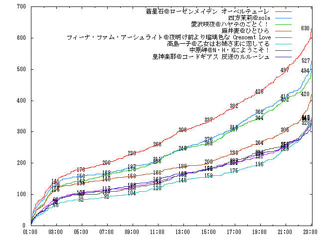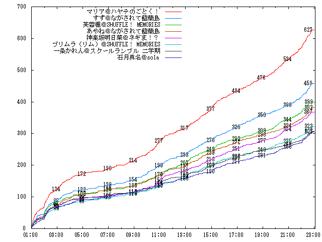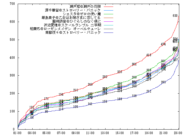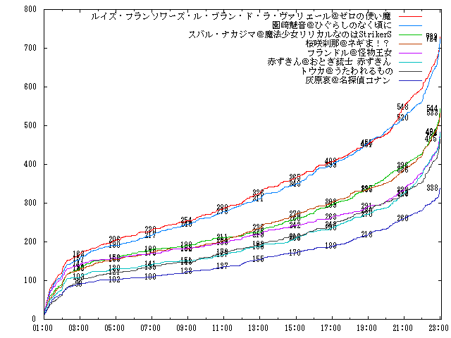 1位 627票 マリア@ハヤテのごとく! 2位 458票 すず@ながされて藍蘭島 3位 399票 芙蓉楓@SHUFFLE! MEMORIES 4位 382票 あやね@ながされて藍蘭島 5位 367票 神楽坂明日菜@ネギま!? 6位 323票 プリムラ(リム)@SHUFFLE! MEMORIES 7位 307票 一条かれん@スクールランブル 二学期 8位 305票 石月真名@sola ━━━━━ここまで本戦進出━━━━━ 9位 288票 小早川ゆたか@らき☆すた 10位 226票 リモネ@シムーン 11位 221票 中慈馬早苗@すもももももも 〜地上最強のヨメ〜 12位 206票 柊杏璃@はぴねす! 13位 186票 ネカネ・スプリングフィールド(黒薔薇男爵)@ネギま!? 14位 171票 壱原侑子@xxxHOLiC 15位 160票 ちかげ@ながされて藍蘭島 16位 158票 草壁優季@OVA ToHeart2 17位 146票 原真砂子@ゴーストハント 18位 144票 クロミ(クルミ・ヌイ)@おねがいマイメロディ シリーズ 19位 126票 秋元こまち(キュアミント)@Yes!プリキュア5 20位 122票 天宮小百合@ときめきメモリアル Only Love 21位 115票 桜木花織@ストロベリー・パニック 22位 110票 マオ@シャイニング・ティアーズ×ウィンド 23位 93票 ノノ@トップをねらえ2! 24位 83票 アイビス・ダグラス@スーパーロボット大戦OG 〜ディバイン・ウォーズ〜 24位 83票 セッティエーム・ローデリア@パンプキン・シザーズ 26位 82票 風林寺美羽@史上最強の弟子 ケンイチ 27位 80票 劉備玄徳@一騎当千 〜Dragon Destiny〜 28位 79票 ハイドラ@円盤皇女ワるきゅーレ 時と夢と銀河の宴 29位 78票 ケイミィ@錬金3級まじかる?ぽか〜ん 30位 76票 ハーマイオニ@ロミオ×ジュリエット 31位 73票 天野卯兎美(うっちぃ)@機神大戦 ギガンティック・フォーミュラ 32位 70票 サラ・ギャラガー@舞−乙HiME Zwei 32位 70票 吉田歩美@名探偵コナン ━━━━ここまで2次予選進出━━━━ 34位 69票 甲州翠怜(大月ミーナ)@月面兎兵器ミーナ 35位 67票 茅沼キコ@Darker than BLACK -黒の契約者- 36位 66票 ひみこ@京四郎と永遠の空 36位 66票 ドラミ@ドラえもん 38位 65票 ジェッシィ・アイジェス@奏光のストレイン 39位 64票 阿野万記(マキ)@ぼくらの 40位 62票 千葉凪沙@コードギアス 反逆のルルーシュ 40位 62票 原川玉子(オバちゃん)@電脳コイル 42位 61票 猫@ケロロ軍曹 43位 55票 姉崎まもり@アイシールド21 44位 49票 雛森桃@BLEACH 45位 47票 吉村逸美@護くんに女神の祝福を! 46位 46票 松本乱菊@BLEACH 47位 42票 ペイオース@ああっ女神さまっ それぞれの翼 47位 42票 アングラス@シムーン 49位 39票 藤崎詩織似の子@ときめきメモリアル Only Love 50位 38票 千絵@おとぎ銃士 赤ずきん 51位 36票 小泉リサ@ラブ★コン 52位 33票 バタコさん@それいけ!アンパンマン 53位 32票 菅原君枝@乙女はお姉さまに恋してる 54位 31票 謝花真央@BLOOD+ 55位 28票 ミーナ・カンダスワミ@Darker than BLACK -黒の契約者- 55位 28票 ナタネ@ポケットモンスター ダイヤモンド & パール 57位 27票 小松奈々(ハチ)@NANA 58位 26票 桜井メイル@ロックマンエグゼ BEAST+ 58位 26票 秋吉冬美(ヘルズバニー)@無敵看板娘 60位 25票 花野アナ@銀魂 60位 25票 青い女@大江戸ロケット 60位 25票 ブーケ@BLUE DRAGON 63位 23票 ジュライ@コヨーテ ラグタイムショー 63位 23票 貴生川鏡子@がくえんゆーとぴあ まなびストレート! 63位 23票 しおり@ながされて藍蘭島 63位 23票 虹野沙希似の子@ときめきメモリアル Only Love 63位 23票 マーヤ・ブライス@舞−乙HiME Zwei 68位 22票 浅川瀬奈@Gift 〜ギフト〜 eternal rainbow 68位 22票 海老塚信乃@_summer 70位 21票 村娘(レイン似)@ふしぎ星の☆ふたご姫Gyu! 71位 20票 りさ(りんの母)@ながされて藍蘭島 72位 19票 ミスズ@銀色のオリンシス 73位 18票 チャングム(ソ・ジャングム)@少女チャングムの夢 73位 18票 三原梢@スクールランブル 二学期 75位 17票 タネタネプリンセス@ふしぎ星の☆ふたご姫Gyu! 75位 17票 イリス・ゴンザレス@エル・カザド 75位 17票 ベッキィ@奏光のストレイン 78位 16票 ヒルド@ああっ女神さまっ それぞれの翼 78位 16票 シャシャ@ふしぎ星の☆ふたご姫Gyu! 78位 16票 むつきの第二ボタンの代わりにスカート下さいと言った後輩@がくえんゆーとぴあ まなびストレート! 78位 16票 登戸沙那@イノセント・ヴィーナス 82位 15票 ジュリア・シルヴァスタイン@BLOOD+ 82位 15票 XIVのカプセルの中の女の子@魔法少女リリカルなのはStrikerS 82位 15票 おタカさん@Yes!プリキュア5 85位 14票 野山野白梅(ウメ)@エア・ギア 85位 14票 五十嵐みんと@ながされて藍蘭島 87位 13票 キーン先生@出ましたっ! パワパフガールズZ 87位 13票 ディッセ@コヨーテ ラグタイムショー 89位 12票 カレン@神曲奏界ポリフォニカ 89位 12票 アイリス@ロックマンエグゼ BEAST+ 89位 12票 くいな@ONE PIECE 89位 12票 北条玉枝@ひぐらしのなく頃に 89位 12票 桃園ゆかり@桃華月憚 89位 12票 和登@ブラック・ジャック 21 95位 11票 エンジュ@恋する天使アンジェリーク シリーズ 95位 11票 安藤加代@ふたりはプリキュア Splash Star 97位 10票 宮前貴子@おねがいマイメロディ シリーズ 97位 10票 リボンちゃん@とっとこハム太郎 は〜い! 97位 10票 アバンのはいてないお姉さん@流星のロックマン 97位 10票 夷川栞@桜蘭高校ホスト部 97位 10票 鈴木空羽@アイドルマスター XENOGLOSSIA 97位 10票 リ