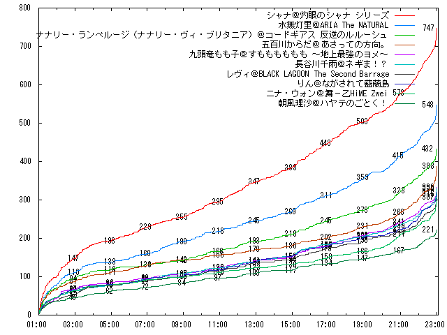 1位 747票 シャナ@灼眼のシャナ シリーズ 2位 548票 水無灯里@ARIA The NATURAL 3位 432票 ナナリー・ランペルージ(ナナリー・ヴィ・ブリタニア)@コードギアス 反逆のルルーシュ 4位 388票 五百川からだ@あさっての方向。 5位 332票 九頭竜もも子@すもももももも 〜地上最強のヨメ〜 6位 329票 長谷川千雨@ネギま!? 7位 316票 レヴィ@BLACK LAGOON The Second Barrage 8位 315票 りん@ながされて藍蘭島 ━━━━━ここまで本戦進出━━━━━ 9位 307票 ニナ・ウォン@舞−乙HiME Zwei 10位 221票 朝風理沙@ハヤテのごとく! 11位 214票 鷹栖絢子@護くんに女神の祝福を! 12位 194票 松平瞳子@マリア様がみてる OVA 13位 185票 とんかつ@ながされて藍蘭島 14位 181票 苗木野そら@カレイドスター ぐっどだよ!ぐぅーっど! 15位 174票 ダリー@天元突破グレンラガン 16位 165票 木之坂霧乃@Gift 〜ギフト〜 eternal rainbow 17位 157票 ローラ@Venus Versus Virus 18位 154票 村上夏美@ネギま!? 18位 154票 アル・アジフ@機神咆吼デモンベイン 20位 150票 知世@ツバサ・クロニクル シリーズ 21位 143票 キヤル@天元突破グレンラガン 22位 141票 寺門通@銀魂 23位 134票 遠山翠@夜明け前より瑠璃色な Crescent Love 24位 133票 ミナト(エマ・スプリングレイン)@ZEGAPAIN 25位 130票 ワるきゅーレ@円盤皇女ワるきゅーレ 時と夢と銀河の宴 26位 126票 諸葛亮孔明@一騎当千 〜Dragon Destiny〜 27位 125票 赤堤ももこ(ハイパー・ブロッサム)@出ましたっ! パワパフガールズZ 28位 124票 イレーネ@CLAYMORE 29位 121票 セイン@魔法少女リリカルなのはStrikerS 30位 119票 ユギリ・ペルセルテ(ペルセ)@神曲奏界ポリフォニカ 30位 119票 春日美空@ネギま!? 32位 116票 ウルド@ああっ女神さまっ それぞれの翼 ━━━━ここまで2次予選進出━━━━ 33位 112票 ガラテア@CLAYMORE 34位 110票 ディエチ@魔法少女リリカルなのはStrikerS 35位 107票 ラクシャータ・チャウラー@コードギアス 反逆のルルーシュ 36位 104票 岸麻衣子@ひだまりスケッチ 37位 90票 若竹遥@ときめきメモリアル Only Love 37位 90票 姉御@大魔法峠 39位 88票 大塚舞@スクールランブル 二学期 40位 73票 きくり@地獄少女 二籠 41位 70票 アニス・アジート@ギャラクシーエンジェる〜ん 42位 64票 ヒカリ@ポケットモンスター ダイヤモンド & パール 43位 60票 サラ@ローゼンメイデン オーベルテューレ 43位 60票 ジャン・プウ@かしまし 〜ガール・ミーツ・ガール〜 45位 56票 ツボミ@SHUFFLE! MEMORIES 46位 52票 平川ナツミ@今日の5の2 47位 48票 結城瞳子@らぶドル 〜Lovely Idol〜 48位 45票 黄昏ミミ@ゼロ デュエル・マスターズ 48位 45票 野原ひまわり@クレヨンしんちゃん 50位 44票 テイル・オル・メヒリム@ヒロイック・エイジ 51位 43票 綱手@NARUTO -ナルト- シリーズ 52位 39票 上原塔子@sola 53位 38票 うるおいちゃん@ぷるるんっ!しずくちゃん 54位 36票 ネフェルタリ・ビビ@ONE PIECE エピソード オブ アラバスタ/砂漠の王女と海賊たち 55位 34票 ヴィレッタ・バディム@スーパーロボット大戦OG 〜ディバイン・ウォーズ〜 56位 31票 胡蝶つばめ@桃華月憚 56位 31票 月夜@Venus Versus Virus 56位 31票 ロード・キャメロット@D.Gray-man 59位 30票 黒崎遊子@BLEACH 60位 29票 永山朱鷺@スクールランブル 二学期 61位 27票 鈴原花音@風の聖痕 62位 26票 芹澤レイラ@NANA 63位 25票 まつざか梅@クレヨンしんちゃん 63位 25票 加賀野井小百合@ストロベリー・パニック 65位 24票 モニカ・ミルドレイク@英國戀物語エマ 第二幕 66位 21票 レクティ・レクゥ@ヒロイック・エイジ 66位 21票 柊高嶺@つよきす Cool×Sweet 66位 21票 青森あこ(あこ先生)@アニマル横町 69位 20票 中原彩雲@ストラトス・フォー アドヴァンス 完結編 69位 20票 フランソワーズ@デルトラクエスト 71位 19票 アカネ@おじゃる丸 72位 18票 ソフィ・ウッド@コードギアス 反逆のルルーシュ 72位 18票 白金神子(シロガネーZ)@出ましたっ! パワパフガールズZ 74位 17票 村田鉄子@銀魂 74位 17票 ミシェル=アシール=ヴォルバン=ド=カベル@ガラスの艦隊 76位 16票 チェニャン@ツバサ・クロニクル シリーズ 76位 16票 エレナ@CLAYMORE 76位 16票 ライカ・クルセイド@機神咆吼デモンベイン 76位 16票 ナツミ@サルゲッチュ 〜オンエアー〜 シリーズ 80位 15票 陸奥@銀魂 80位 15票 安達絵美理@エア・ギア 82位 14票 レタス@やさいのようせい N.Y.SALAD 83位 13票 ミズ・シタターレ@ふたりはプリキュア Splash Star 84位 12票 電ボ子@おじゃる丸 85位 11票 ミレッド@牙 -KIBA- 85位 11票 マリエル@パンプキン・シザーズ 85位 11票 アクビ@アクビガール 85位 11票 麻井麦のクラスの担任@ひとひら 85位 11票 黒檻のヒナ@ONE PIECE 85位 11票 みつよ@ながされて藍蘭島 85位 11票 夢姫@MUSASHI-GUN道- 85位 11票 夜神幸子@DEATH NOTE 85位 11票 黒潮真耶@スカルマン 94位 10票 飛鷹葵@獣装機攻ダンクーガ ノヴァ 94位 10票 葉っぱを拾ってきた幼女(妹)@ロミオ×ジュリエット 94位 10票 ウェディ@DEATH NOTE 94位 10票 王六花(ロッカ)@まもって!ロリポップ 94位 10票 ユキコ・ダテ@スーパーロボット大戦OG 〜ディバイン・ウォーズ〜 94位 10票 元宮あかね@遙かなる時空の中で 舞一夜 100位 9票 駒鳥つくね@おねがいマイメロディ シリーズ 100位 9