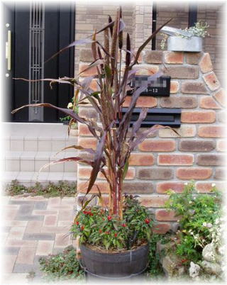 | F1オーナメンタル・ミレット’パープルマジェスティ 学名:Pennisetum glaucum 'Purple Majesty 別名:トウジンビエ、パープルミレット、パールミレット、古代キビ |