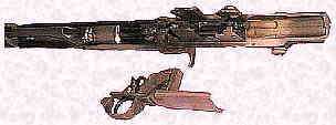![]() 全長83cm、重量4.3kg。装弾数20発。 ストックは脱着可能です。 ![]() 全長51cm、重量2kg。装弾数6発。 トリガー下のレバーを引くとタマが排出、装弾されます。 |