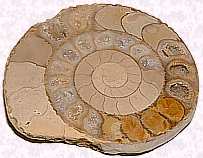 石の中の多数の巻貝Goniatites 白亜紀 約1億年前 アメリカ・ワイオミング州 |