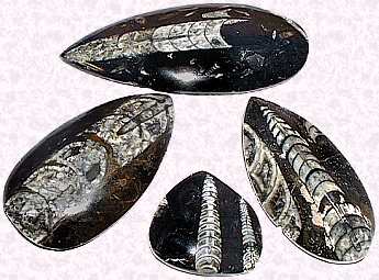 磨き石の中の直角石Orthoceras デボン紀 約3億5千万年前 モロッコ |