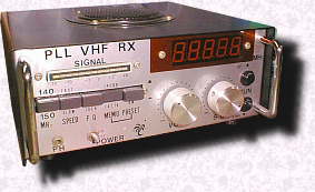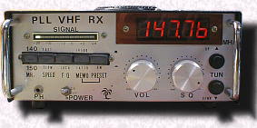 All Hand Maid キットを利用していない完全オリジナルの自作受信機ですよ。なかなか格好いいでしょう。 受信部はモトローラのICを使ったFM回路です。感度優先で高級フィルターを使った、受信フィーリングが良い(ノイズの少ない)設計です。選局(局発)はPLLシンセサイザー回路(デジタル選局)を採用。こちらもモトローラのLSIを使い、比較的簡単にできるものですが、調整が少々困難かな。以上の回路の設計は本(トランシーバーの製作入門)を参照しました。カウンター部(デジタル表示部)とシグナル表示部、アンプ、電源は僕が設計し製作。また、おまけとして受信部にBSチューナーに使われている半導体を使ったプリアンプが仕込んであります。選局は右のTunボタンでします。また、好きな周波数を2つプリセットできます。受信範囲は、140〜160MHzで、アマチュア無線、各種業務無線、鉄道無線、消防無線などを聞く事が可能。性能はというと、下手なハンディー受信機よりはよっぽど良く聞こえ、1mのロッドアンテナで50k先の救急通信(50W)ががんがん入ってきます。 製作には1ヶ月必要でした。部品の入手がてこずり、秋葉原に1週間も通った記憶がよみがえります。苦労の甲斐あり、この受信機は僕の製作品の中で一番の実用品になりました。現在は地域の救急通信を毎日受信してくれています。 |