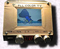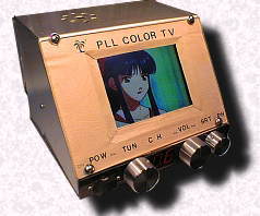 All Hand Maid パチンコ台に付いているモニターを利用した、3.3インチ液晶テレビです。秋葉原にある秋月電商のキットを一部組み込んで作ってみました。 まずはモニターについて、僕が使ったのはカシオ製のバックライト付きカラー液晶モジュールと言うもので、パチンコ台専用に作られた製品がジャンクとして売られていた物です。これにRGBコンバーター(キット)を付けると、モニターが使えるようになる訳です。次はテレビチューナーですが、お手軽にビデオデッキの中に入っているユニットを利用しました。このユニットにはロータリーエンコーダー(デジタルによる電子チューニングができる部品)が付けられるので、これもキットで作り、繋げてみました。音声出力にはICを使った0.5W程のアンプを自作。最後は電源ですが、モニターのバックライトに高電圧が必要なので、DC-DCコンバーター(自作)を使い、また全体にかなりの電流を消費しますから、ノートパソコン用(?)のスイッチング電源を利用しました。以上の部品をケースに組み入れる訳なのですけど、これが一番大変。モニターの入る理想的な台形ケースがあったので、加工し全部品を入れましたが、なにせケースが小さすぎました。ご覧の様に、アリの入る隙間も無いほどの(大げさ)ぎゅうぎゅう詰め状態。この箱入れ作業にほとんどの時間が費やされたのでした。 スイッチ類は左より、電源,Tun,チャンネル表示,Vol,照度調整、ヘッドホンジャック。50pのニ連ロッドアンテナを立てると、面白い様に映りました。 ポケットテレビとまでいきませんが、小さなサブテレビとして完成!!。製作には2週間程かかり、僕が今まで作ってきた電子工作物の中でも1.2の難物でした。このテレビを見ていると、作るのに苦労した思い出までも浮かんできます。 |