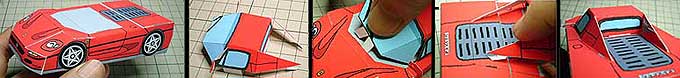 ボディとルーフが分割です。先にボディを組み立てる。ルーフをしっかり折り(ミラーは外側へ)前から差込み、次に後ろ側を差し込みます。
