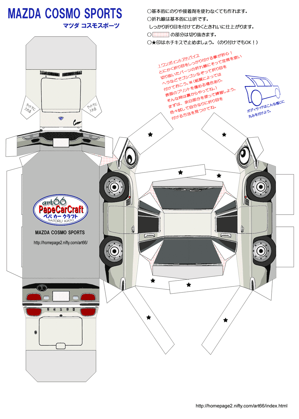 展開図画像をお手持ちの画像ビューアソフト等で用紙サイズA4にフィットするようにレイアウトを設定してプリントして下さい。用紙は厚手のプリント紙を使用して下さい。
