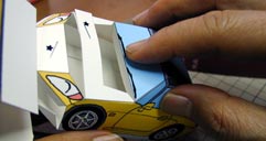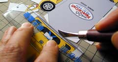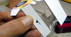 ■05 組み立て時に穴に差し込む部分があるので、忘れないように穴を開けておきます。 車種によってはルーフアンテナやリアスポイラー等を取り付ける穴があるのでその場合も穴を開けておいて下さい。 この作業はカッターナイフを使います。 |