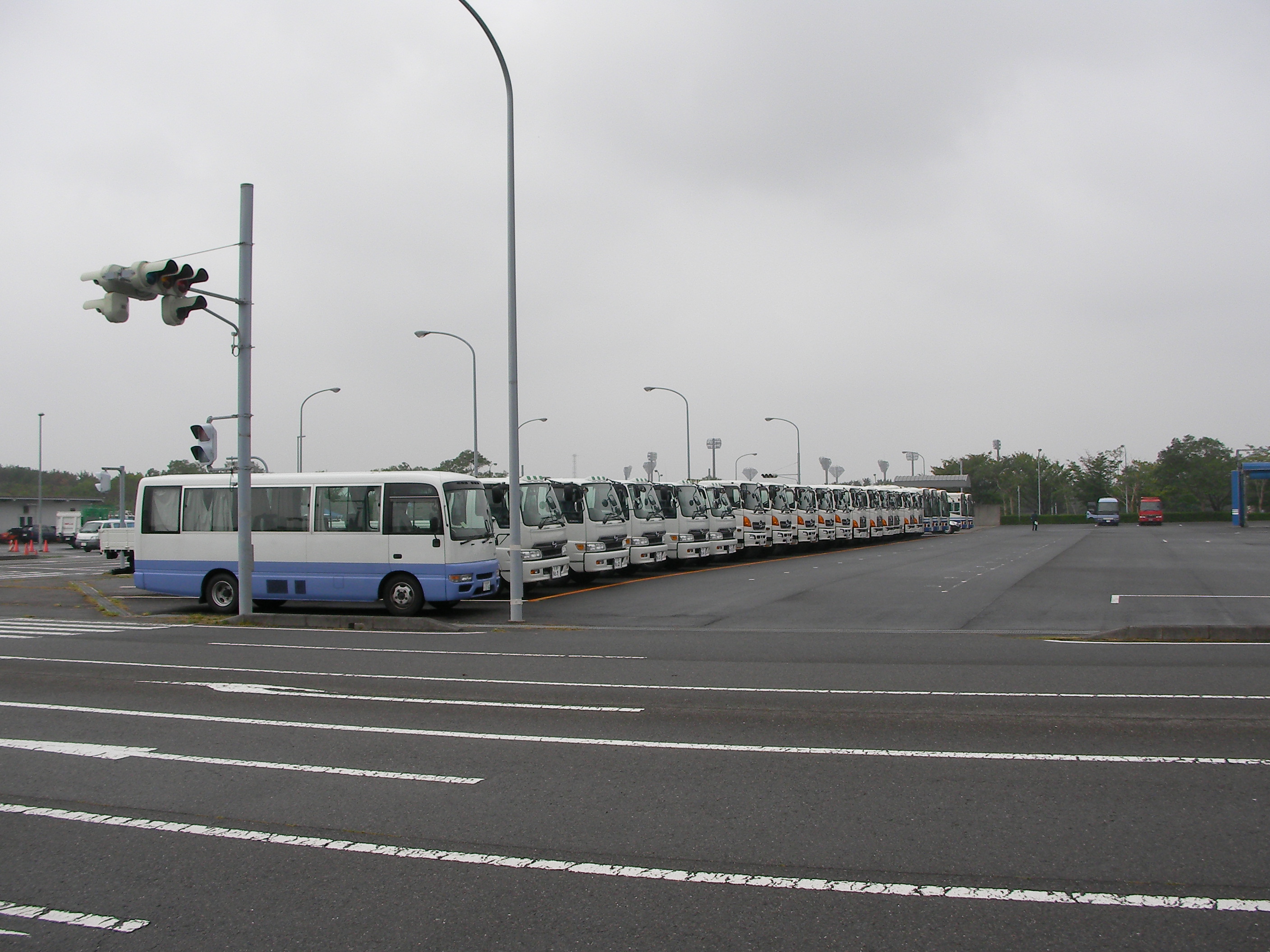 バスがバンバン。ここまで同じ車両があるとある意味不気味でしょ?(笑)
