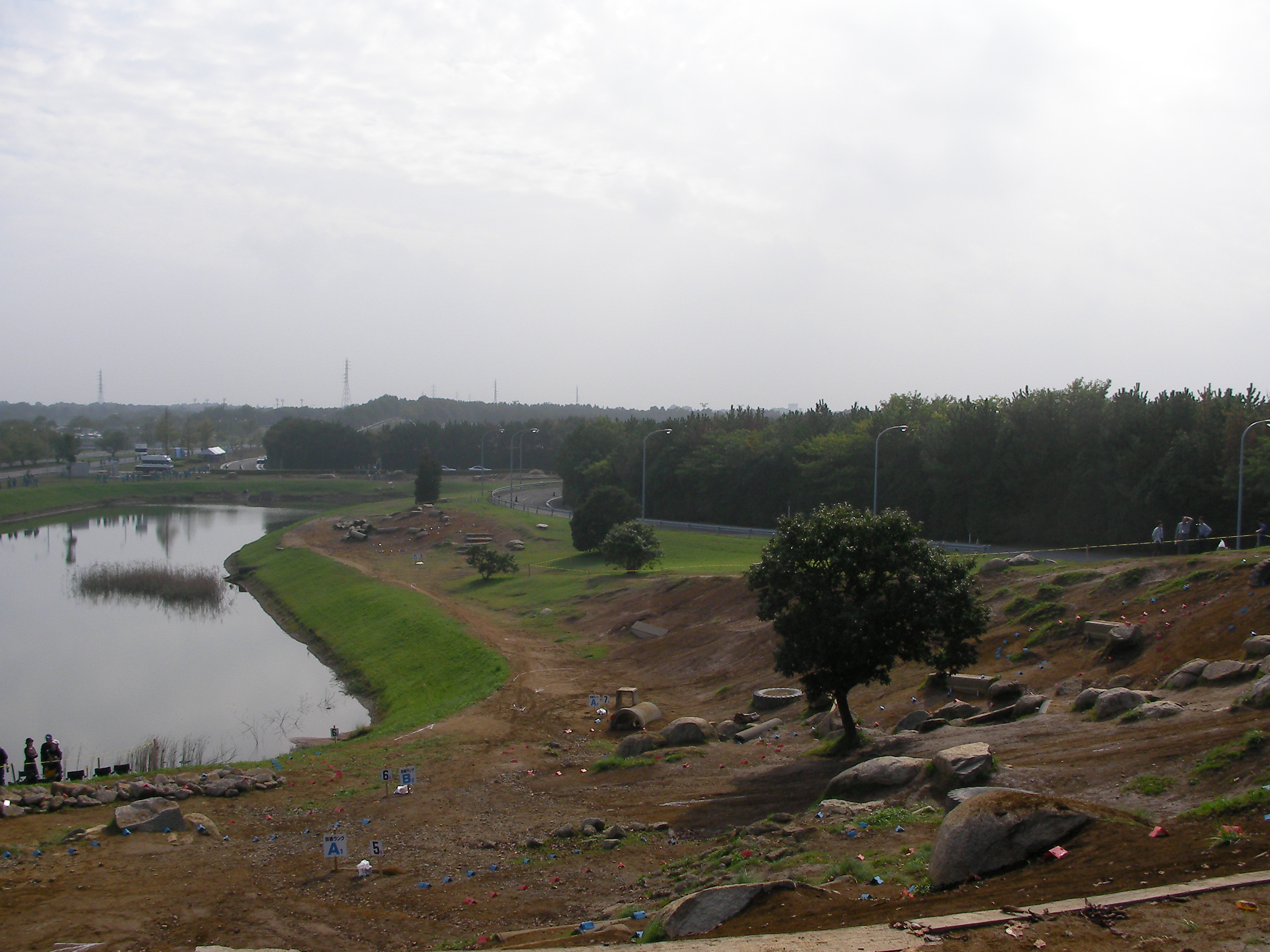 スラローム、狭路、一本橋、急制動などの前後はここで待機してました。この写真の右手で競技。
