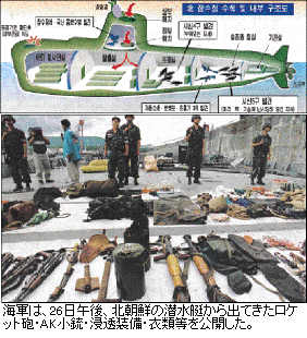 ▲96年8月のサンオ級潜水艦の最初の浸透に引き続き、ユーゴ級潜水艇の浸透発見は初めてであり、労働党工作員の潜水艇利用浸透も最初と確認