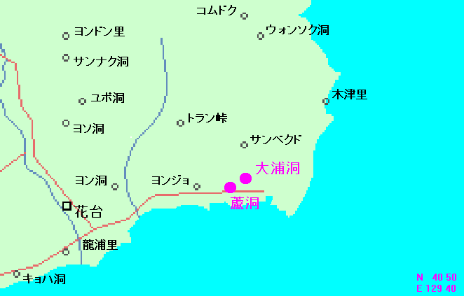 北朝鮮の弾道ミサイルは、北朝鮮東海岸の大浦洞から約10kmの蘆洞近郊の施設から試験発射されている。咸鏡北道花台郡舞水端里におけるこのミサイル基地の最初の建設は、伝えられるところによると1988年に完成した。その時以来、計2回のミサイル試験が、この施設から実施されている。ノドン1号ミサイルの原型は、1990年5月に発射台上に探知された。そして、このミサイルの唯一の試験飛行は、1993年5月に実施された。そして、1998年8月、より長射程のテポドン1号ミサイルが、小型衛星を軌道に乗せる試みとの主張の下に打ち上げられた。