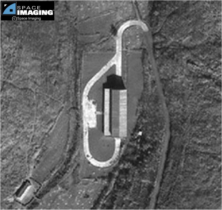 北朝鮮大浦洞のこの解像度1mの白黒画像は、1999年11月1日にSpace Imaging社のIKONOS衛星により収集された。画像は、大浦洞ミサイル施設を写している。