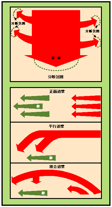 北朝鮮地上軍部隊は、CFC部隊に防御態勢を放棄又は転換させることを試みるために、迂回機動を実施する。迂回機動は、CFCの退却を阻止するために、CFCの増援を殲滅し、退路を遮断する試みを特徴とする。北朝鮮地上軍の迂回は、火力優勢及び機動性を重視した2次攻撃軸を有し、CFCの後方地域縦深を打撃する目的を持った諸兵科連合作戦である。迂回作戦の成功のために、奇襲、欺騙、及び地形が使用される。攻撃機動としての迂回は、第1梯隊が交戦しないことを除き、包囲と同様である。