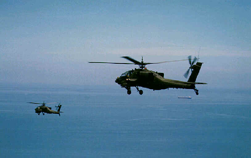 AH-64チームは、標的への途中で、海岸を離れて飛行する。典型的に、この任務は、夜間に実施される。密接な搭乗員の調整は、水上のコントラストの低い条件のために、より重要となる。