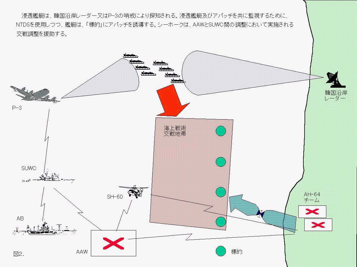 ホーバークラフトは、多くの諸島又は朝鮮半島の延長した海岸線に容易に接近することができる。防衛の鍵であるAH-64は、襲撃部隊の韓国海岸地域到達を阻止することができる。