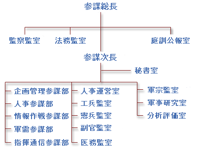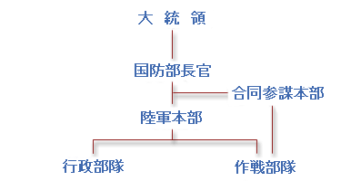 国防部長官の命を受け、陸軍を指揮・監督 戦闘を任務とする作戦部隊に対する作戦指揮・監督は提議 |