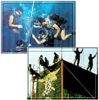 水中爆破(UDT:Underwater Demolition Team)、陸海空全天候特殊打撃(SEAL:Sea Air