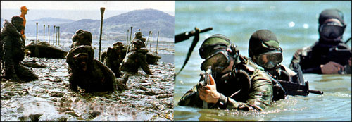 海と砂浜は、敵から隊員を保護する自然の産物である。彼らの浸透作戦が主として海を通して行われるのは、このためである。潜水艇やボートに乗って、敵海岸に行った後、潜水や水泳で上陸することが、彼らの通過儀礼である。