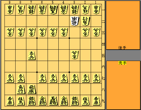 左の局面が相三間飛車である。 「石田流でバンバン攻めてやろう」 と思っていた先手は面食らうことでしょう。 この局面で「先に攻めてやる!」と▲7四歩とするのは危険な1手だ。 このような戦型では飛車が飛び出すとワザがかかりやすく、 慎重に駒組を進め結果としてお互いに自重することが多い。 もし、この局面で▲7四歩とすればどんな変化になるのだろうか。