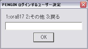 上記の設定で、実際にマクロを起動すると、 接続サーバーを選択する画面が出てきます。 この時、#1を選択すると、 の様に、デフォルトユーザーと、任意のユーザー名の指定が 出来ます。 その後、最終接続確認画面が、 起動されます。 マクロファルイが正しい記述になっている場合は、Tera Termが起動し、指定したユーザーでログオンする事となります。 |