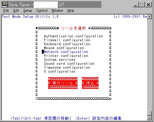 画面が起動すると、"Network configuration"を選択し、”実行ツール”を選択します。
