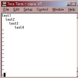 コマンドモードの状態で、コロン(:)を入力した状態