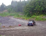 豪雨の中、カッパ着てバギーの競争です。1000円