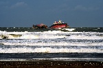 この日、高速(木更津北−佐原香取間 ETC 2,500円)で飛ばして、神栖市日川海水浴場へ。 先日の嵐で座礁し真っ二つになってしまったタンカーが。