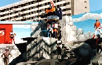 平成元年、埋め立て中の芝浦ふ頭、レインボーブリッジのアンカレイジ工事も見える。