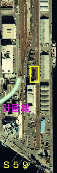 黄色緯線で書いた部分で地面が変わっていますので旧ふ頭部分と埋め立て部分の境は明確です。