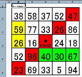 ビンゴゲ−ムをExcelVBAで作成出来ないかとの質問があったので作った。特徴としては、