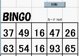 ・ビンゴカ−ドは1〜99のランダム数字で作成。