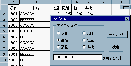 [4].「解除」ボタンクリックでデ−タベ−スシ−ト「検索」ボタンが出来るので