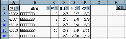 ・このマクロでフイルタ−が掛かり「解除」ボタンが付く。