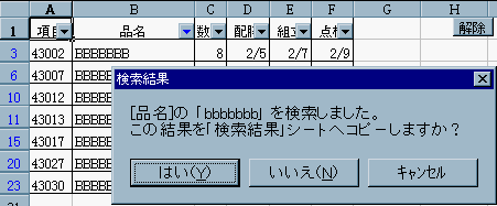 ・このマクロで抽出した結果を検索結果シ−トへ貼り付ける。