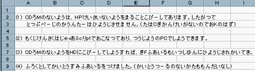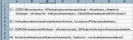(他のアプリケ−ション又はExcel95/97で作成した文章も、A列へ貼り付ければ