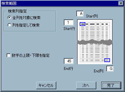 [2]-1 特定の列を指定し、数字の上限・下限を指定して検索。(この検索の場合は列指定が必要)