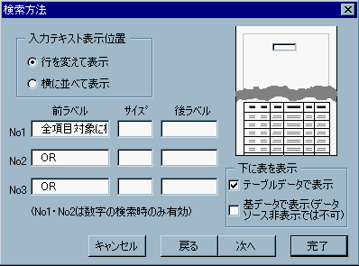 ・検索文字入力はテキストボックスで行ないますが、オプションボックスを指定すれば、