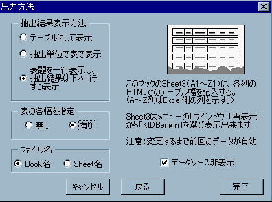 [2]「抽出単位で表で表示」(新しいWindowへ抽出毎にテ−ブルを表示)(例1〜4参照)