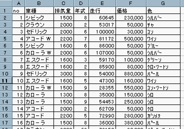 (上表の価格列は、Excelでの表示形式は「数値でカンマ付き」のケ−ス)