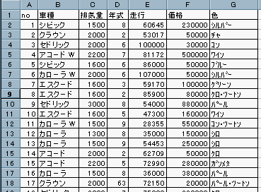 [1].上図のような変換したいデ−タベ−スを開く(罫線は無くてもよい)