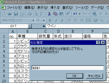 [3].上記のインプットボックスで検索対象の列(項目のセルを選択)を指定する。