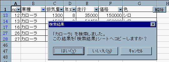 [6].「解除」ボタンクリックでデ−タベ−スシ−ト「検索」ボタンが出来るので
