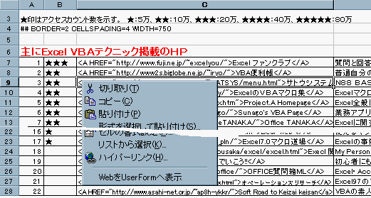 [3].右クリックでショ−トカットメニュ−(下図参照)が表示ので、「WebをUserFormへ表示」
