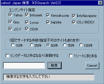 KI10search(検索エンジン10サイトから連続自動抽出)ver0.2(2001/02/03)