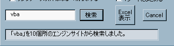 検索終了で下図を表示(終了で"Excel表示"ボタンクルックでExcel画面になる)