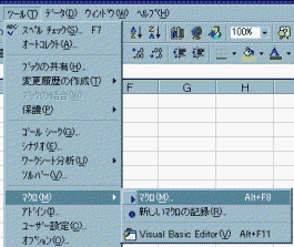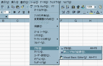 (4)記録されたマクロを見たい場合は、[ツ−ル][マクロ][Visual Basic Editor]を指定で