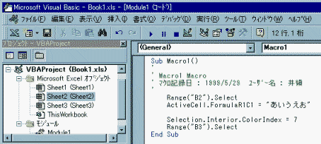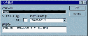 (2)初めての記録では、Module1が自動的にできそのシ−トに上図のマクロ名で記録される。
