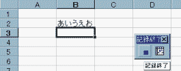 セル"B2"へ「あいうえお」と入力し、その入力する過程を記録し、記録されたマクロを実行、